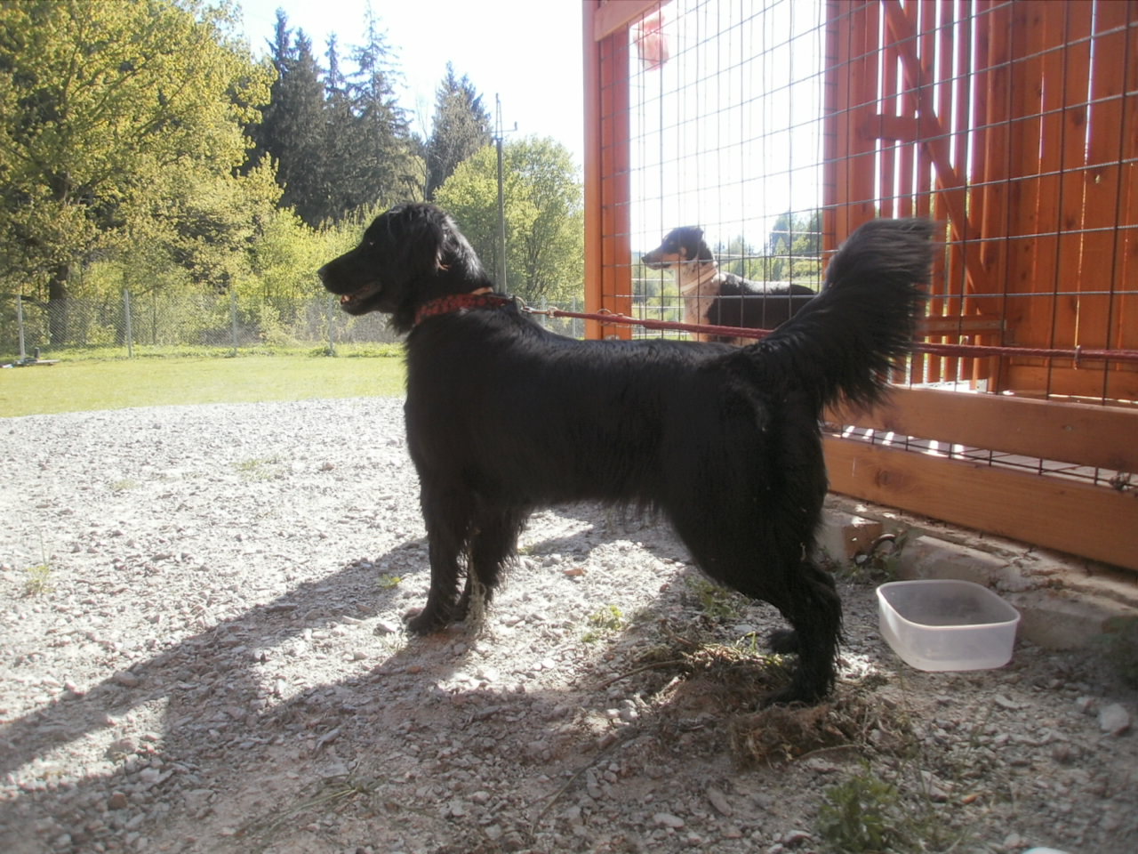 Megg běžela 3x - 1. běh sólo a další 2 párové, první s Aškou (český strakatý pes) a druhý s plemenem louisianský leopardí pes (jméno nevím) .. S Aškou jsme dokonce běželi na 2 pokusy, protože, když při prvním běhu byla Meguše účelně vypuštěna asi o vteřinu později s předpokladem, že je rychlejší a že Ašku dožene, tak Meguše nás všechny přelstila, vzala to zkratkou, dohnala střapec a přetrhla jej :D Druhý pokus už máme natočený - tentokrát jsme se snažili je vypustit zároveň, Megg opět dohnala a zdemolovala střapec (ale nepřetrhla!! :D), celá šťastná si ho přivlastnila mezitím co Aška poklusávala kolem :D Jakmile jsme došli domů, padla a spala ;)